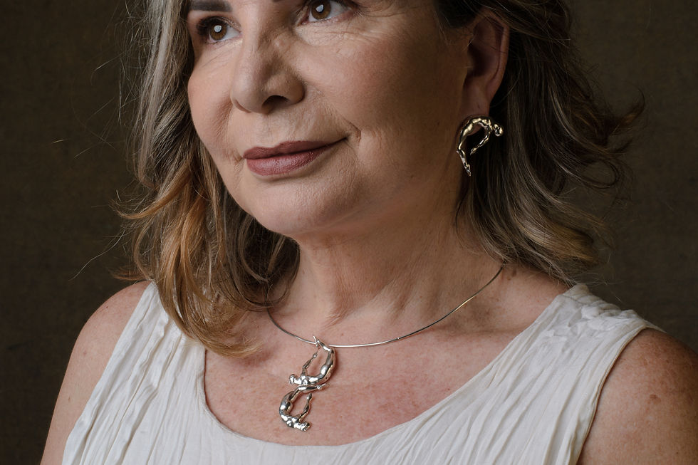 Pingente Duplo Elemento Escultórico Ouro Branco e Ouro Amarelo 18 k