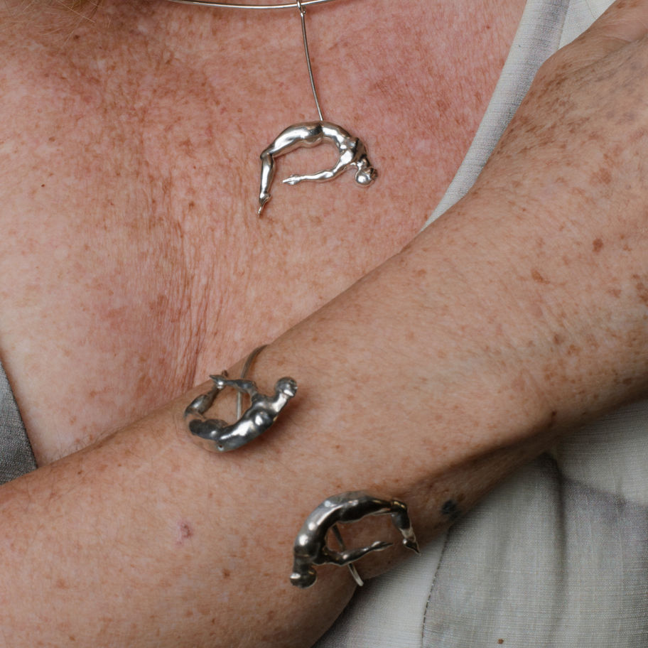 Colar confeccionado em Prata 925, compondo uma elegante gargantilha. Esta joia apresenta um aro liso e maleável, que sustenta uma escultura pendurada pelo cordão umbilical, simbolizando o fio da vida. Parte da coleção inspirada na instalação de arte "Linhas, cordas ou cordões umbilicais" de 1999, esta peça traz uma visão estética e existencial sobre a condição humana, transformando um conceito artístico em uma joia única e significativa.